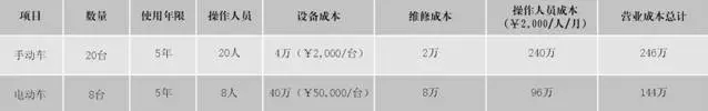 手動搬運車與電動搬運車實際消耗比較(8臺電動搬運車相當于20臺手動搬運車)